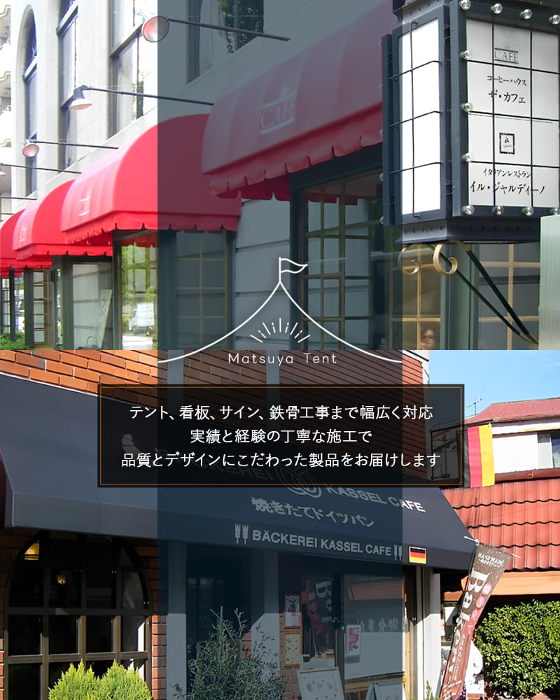 テントや看板に関することなら、どんなご要望にもお応えできる自信がありますので、どうぞお気軽にご相談ください。